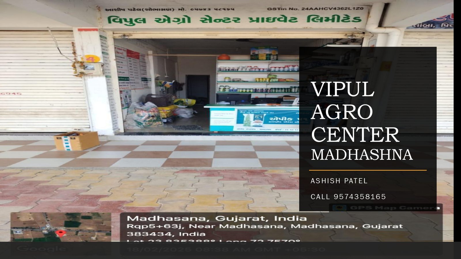 વિપુલ એગ્રો સેન્ટર પ્રા.લી ની સ્થાપના ૨૭/૦૬/૨૦૨૦ ના રોજ ચાણસ્મા ખાતે કરવામો આવેલી છે જે કંપની ના મેનેજીગ ડાયરેક્ટર શ્રી પટેલ વિપુલભાઈ બાબુલાલ જે બી.આર.એસ એગ્રીકલ્ચર ક્ષેત્રે ૧૫ વર્ષ નો અનુભવ ધરાવે છે.